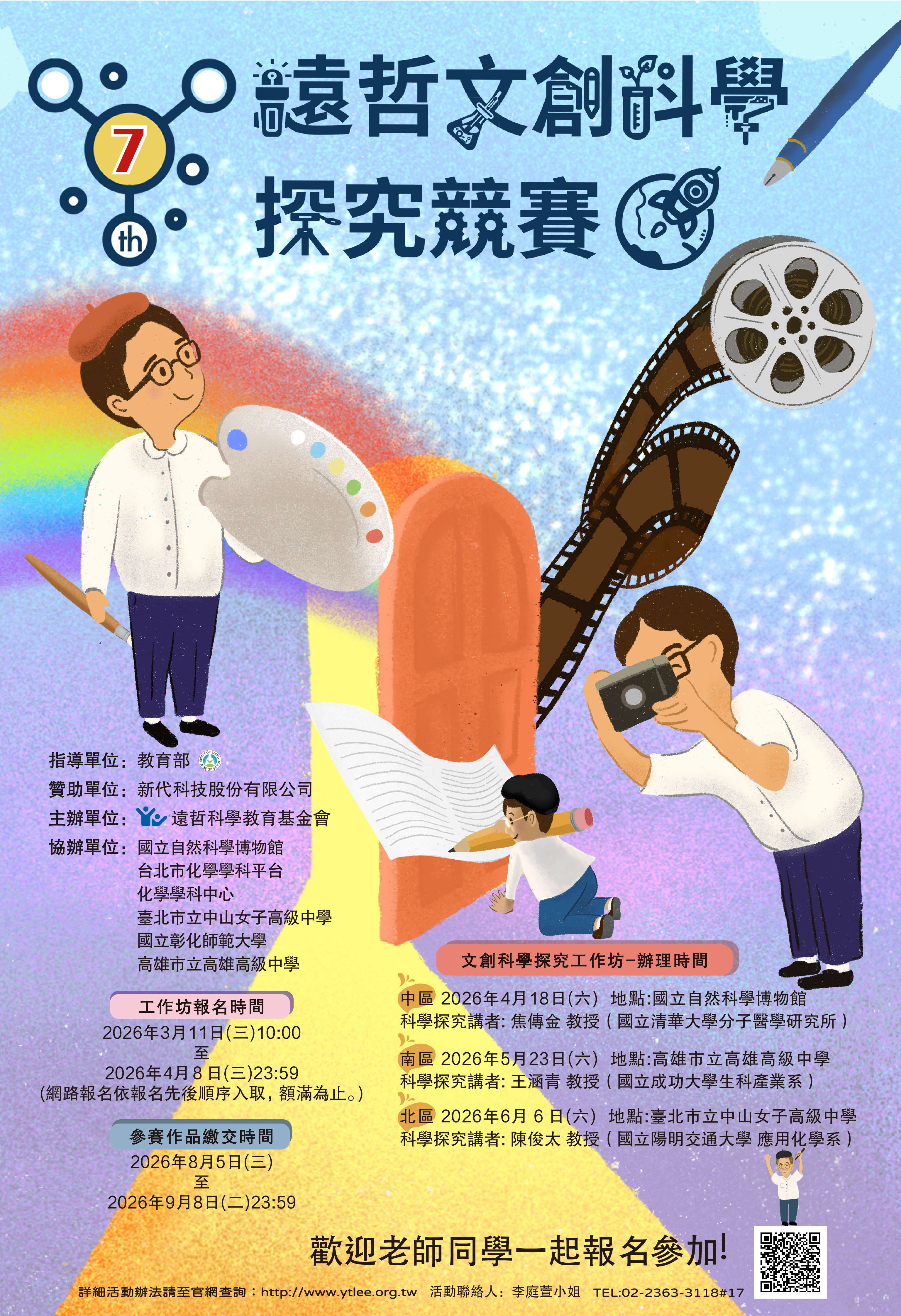 競賽相關資訊如下:對象:全國對科學探究有興趣之國中、高中(職)在學學生。報名日期:自2026年3月11日起開始受理報名。