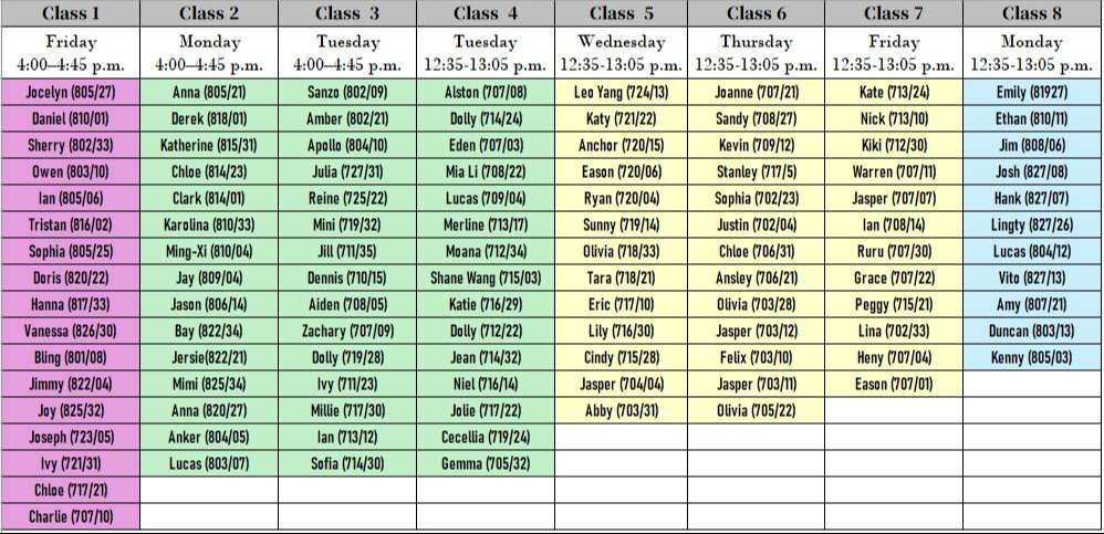因課程時段皆以口說能力進行分班,課程時段與人數皆有其限制 ,恕無法配合學生個人需求進行時段與班別更換之申請。