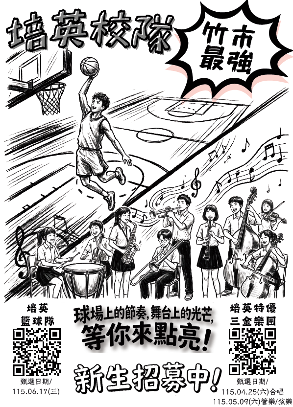 (二)入學測驗為4/25(六)上午半天(8:00~12:00),請務必將4/25上午半天預留下來